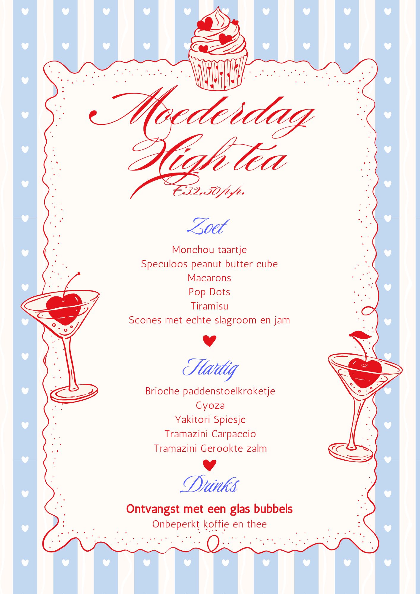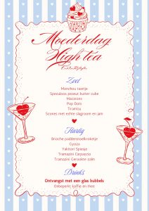 Tijd voor thee, samenzijn en een heerlijke combinatie van zoete en hartige hapjes? Lieve mama, jij verdient een momentje om heerlijk te ontspannen en in het zonnetje gezet te worden. Kom je gezellig High tea- en op Moederdag?